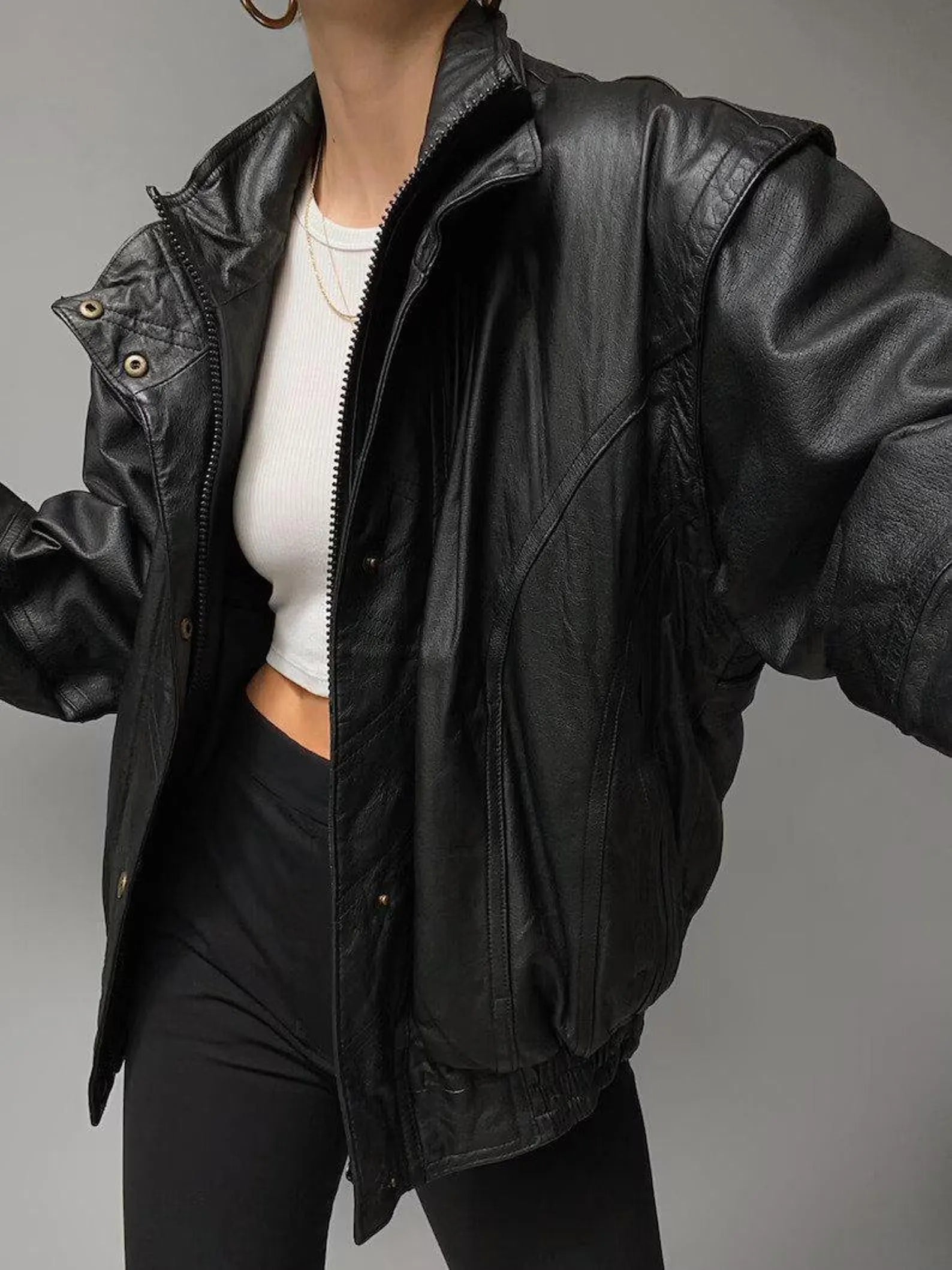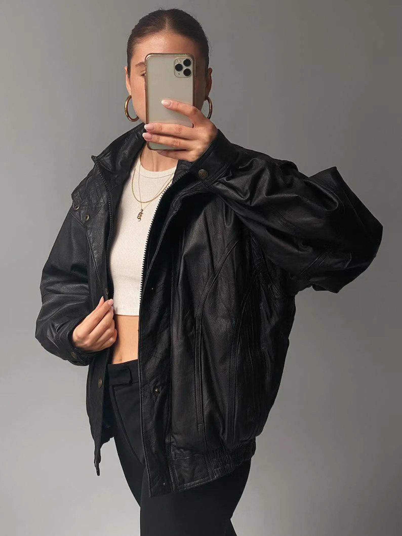 Our oversized Full Grain women's leather jacket is meticulously crafted from 100% genuine leather, sourced from the best tanneries. The leather is soft yet sturdy, offering a luxurious feel and exceptional durability. The jacket features a smooth and supple texture, ensuring maximum comfort while maintaining its structure and shape over time. The high-quality craftsmanship is evident in every detail, from the precision stitching to the flawless finish, ensuring that you receive a top-notch product that will stand the test of time.
